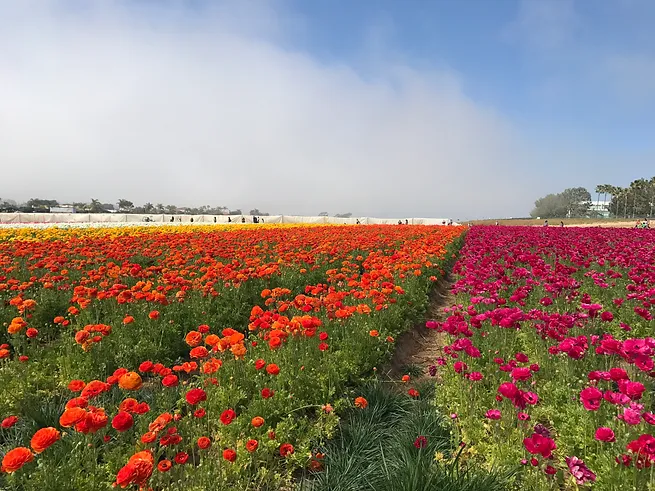 I am SO excited to write this post because the Flower Fields are an attraction in Carlsbad, CA that I just discovered this year. I’m sure you’ve heard of the famous Tulip Festival in Denmark, or the Lavender Fields in France, but did you know every year mother nature welcomes Spring to San Diego county with 50 acres of Giant Tecolote Ranunculus flowers? These flowers make up The Flower Fields at Carlsbad Ranch, and they are SO colorful, and SO beautiful. Today’s post is going to tell you everything you need to know to visit this stunning part of Southern California.